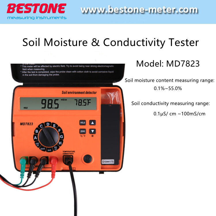 Soil conductivity measuring range: 0.1μS/ cm ~100mS/cm