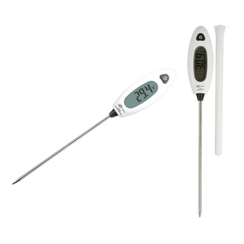 This product is mainly used for measuring the food temperature pen type structure food-level stainless steel probe width of measuring scope. The probe-type food thermometer may be used for measuring the cooking temperature and grilling temperature being applicable for such various fields as refrigeration heating food processing and rubber and plastic processing.