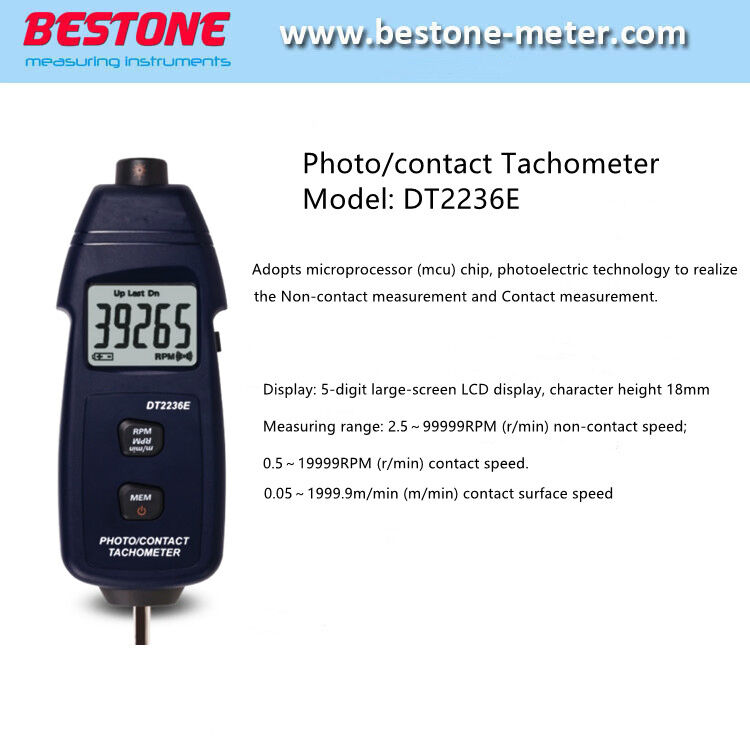 | Resolution | Photo tach:0.1RPM(2.5 to 999.9RPM);1RPM(over 1000RPM) Contact tach:0.1RPM (r/min) (0.5~999.9RPM); 1RPM (r/min) (above 1000RPM) Surface Speed: 0.01m/min(0.05~99.99m/min);0.1m/min(over 100m/min) |